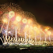 「火焔型土器」は、昭和11年(1936)長岡市の馬高(うまたか)遺跡で初めて発見された「火焔土器」をはじめとした、信濃川流域の遺跡から出土した、4つの鶏冠状把手(けいかんじょうとって)や鋸歯状突起(きょしじょうとっき)などを持つ、燃え上がる焔を思わせるような造形美を誇る縄文時代中期を代表する土器です