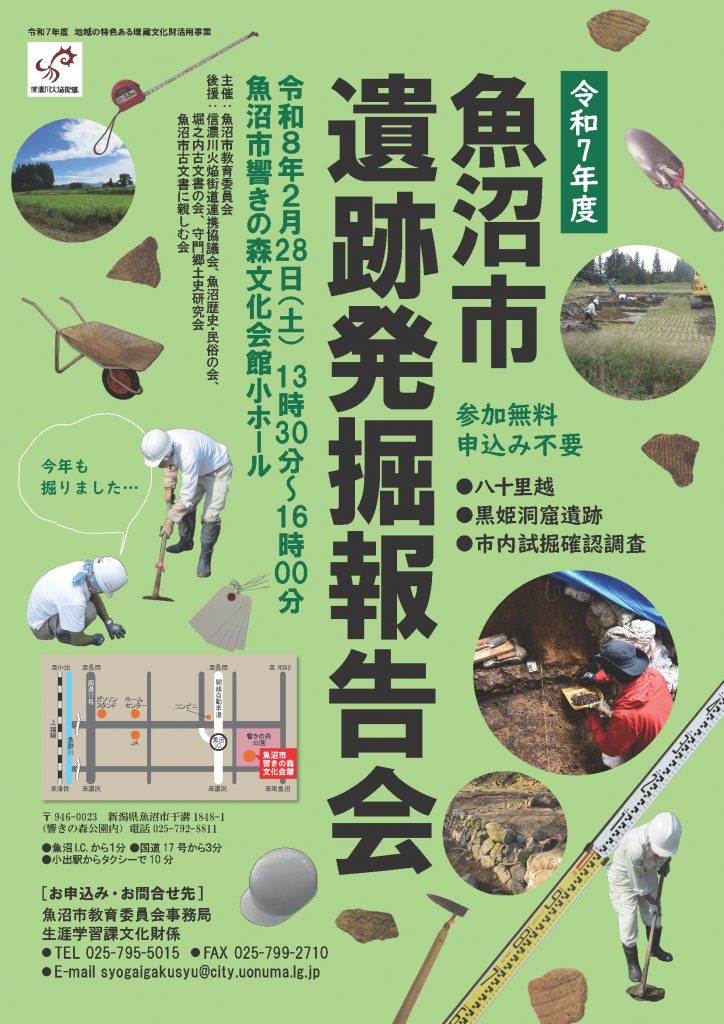 令和7年度に魚沼市内で調査された遺跡の成果報告を行います。